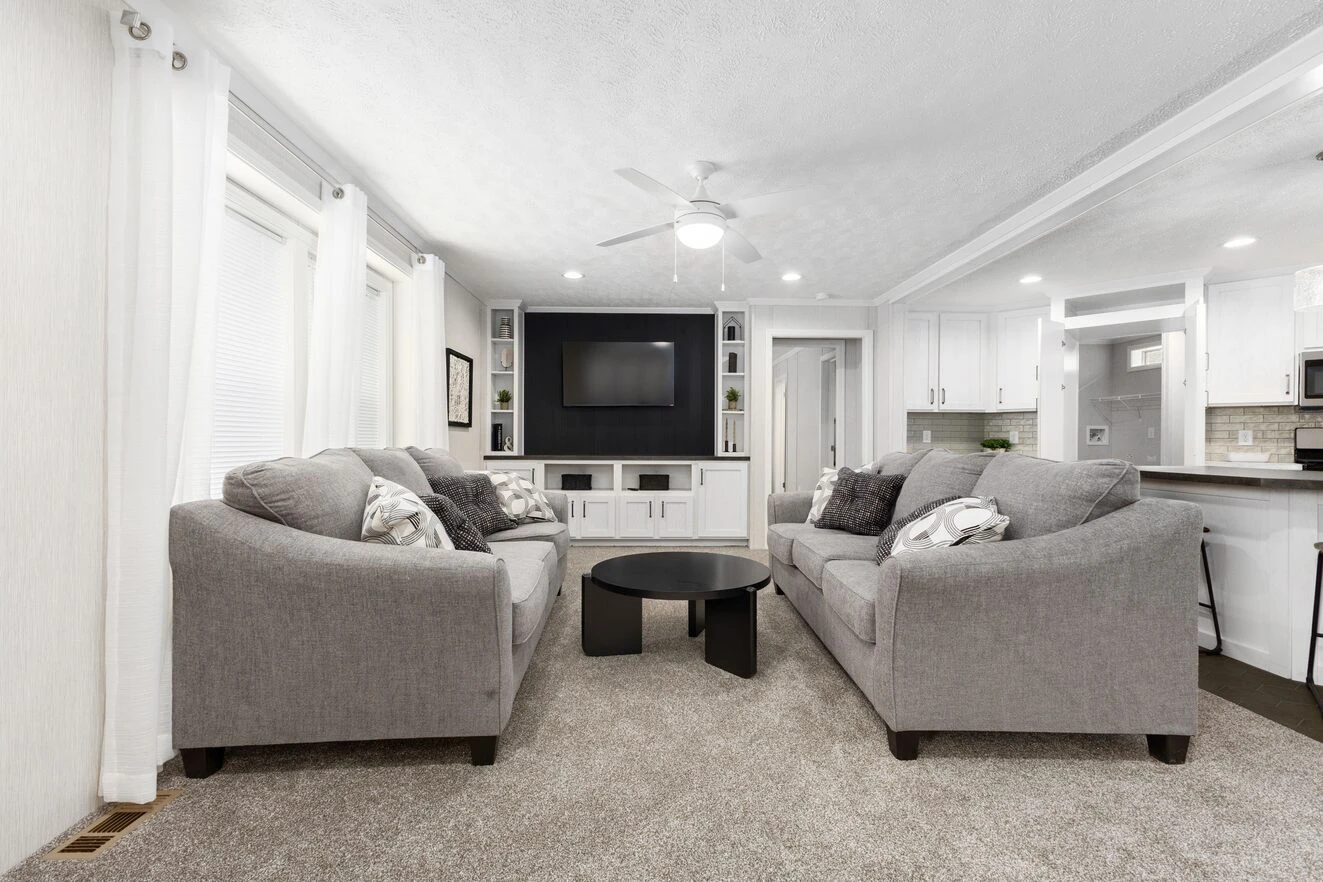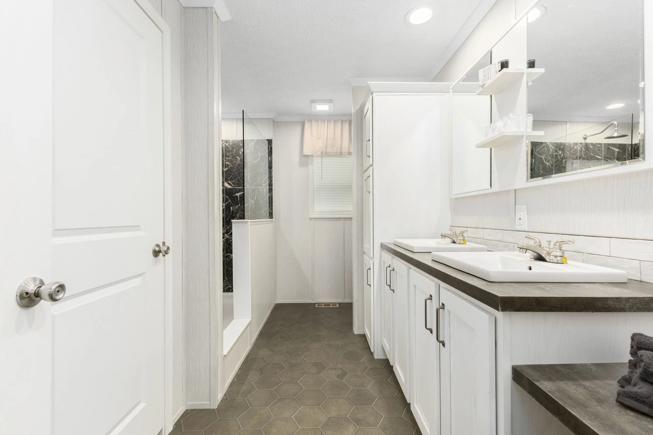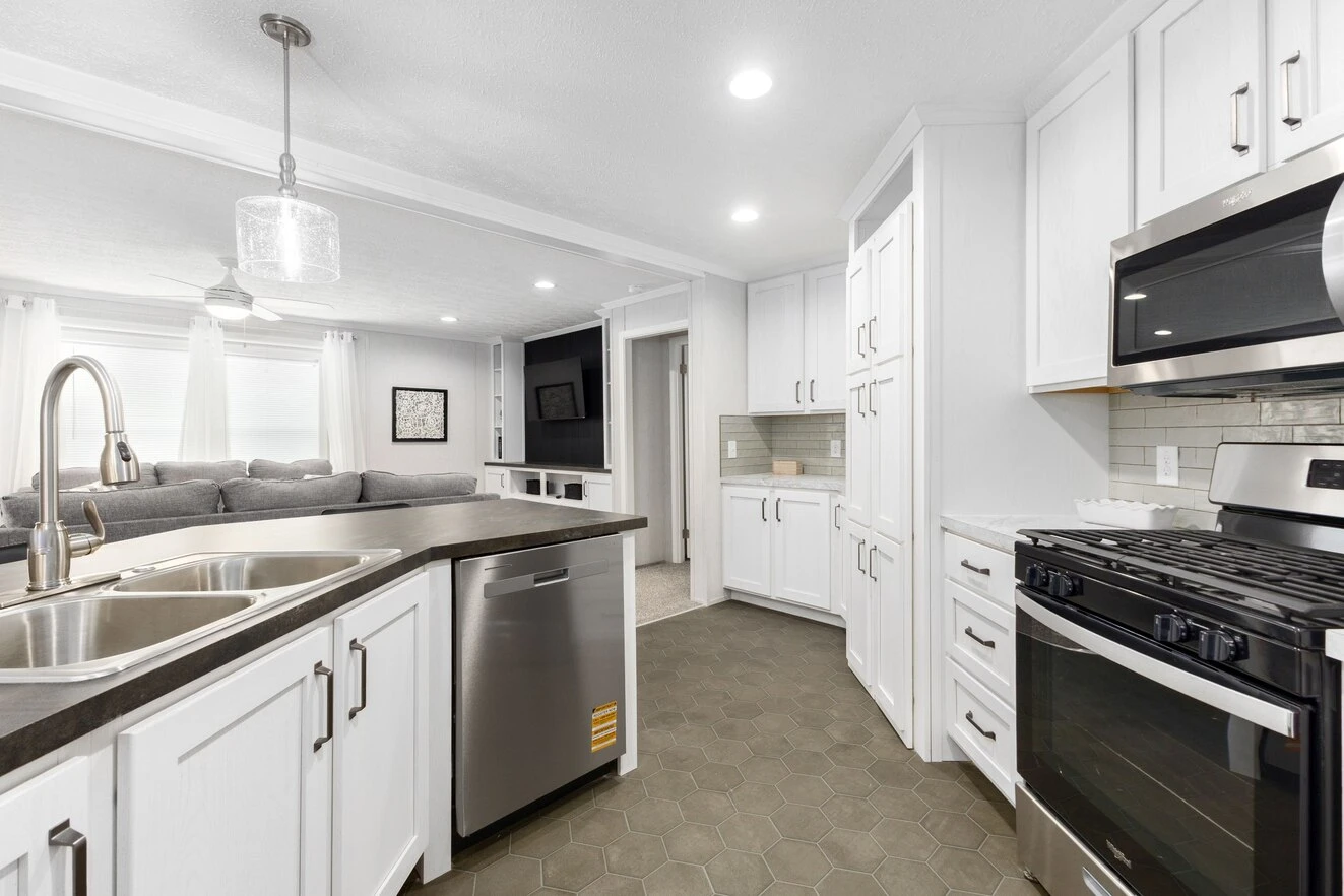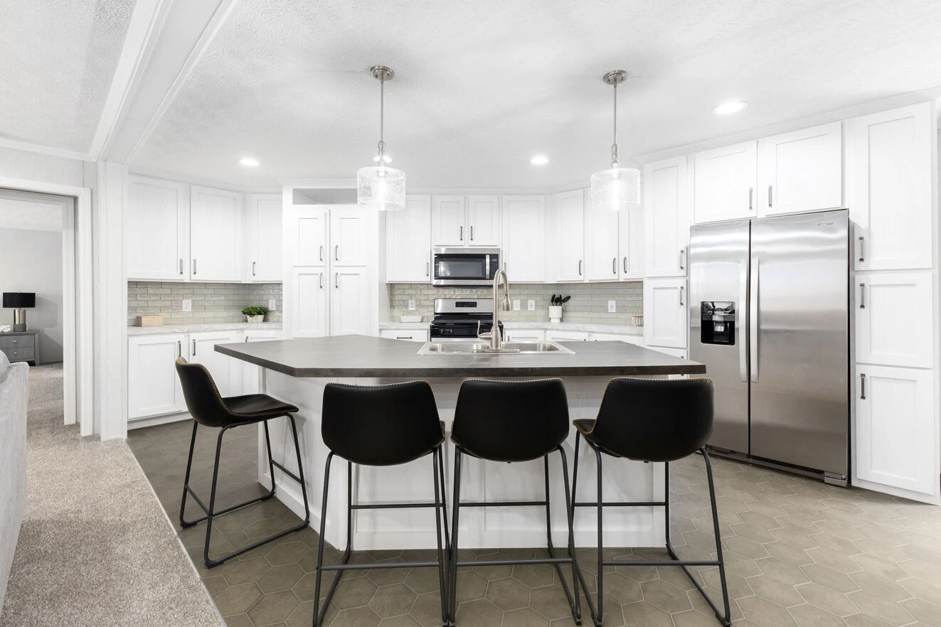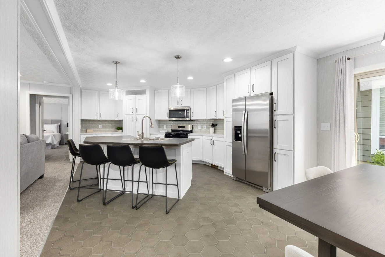 The Alphard 28603E offers a spacious 1,600 sq. ft. double-wide layout with 3 bedrooms and 2 baths. This home features 8’ sidewalls, flat stipple ceilings, and durable Shaw flooring. The modern kitchen includes mission-style cabinetry, soft-close drawer guides, and a stainless steel sink. Built for efficiency, it boasts 2x6 exterior walls, Low-E windows, and R-19 insulation, providing a high-quality, comfortable living environment for any family.