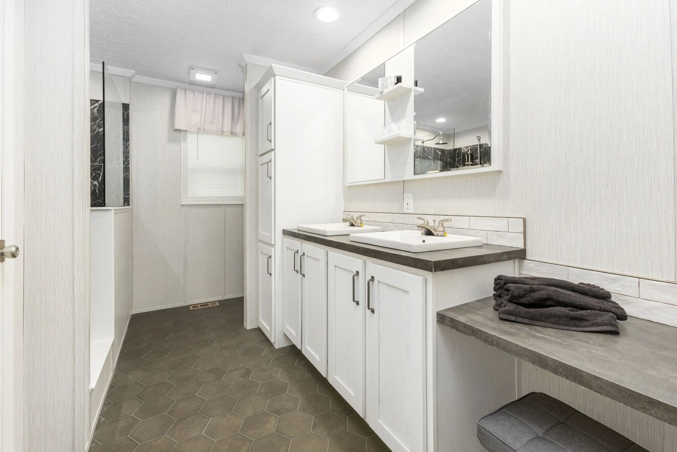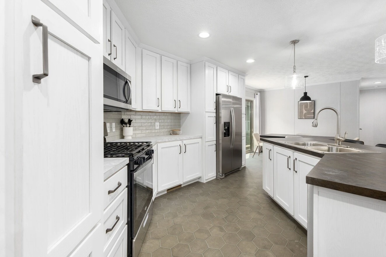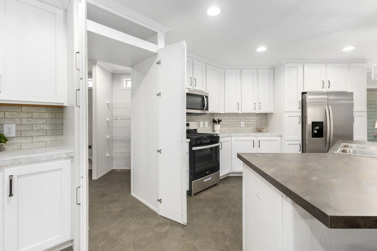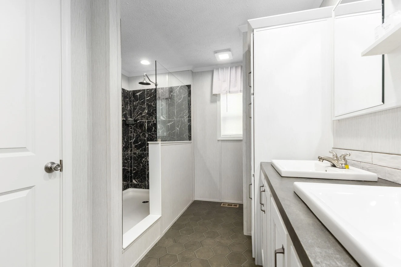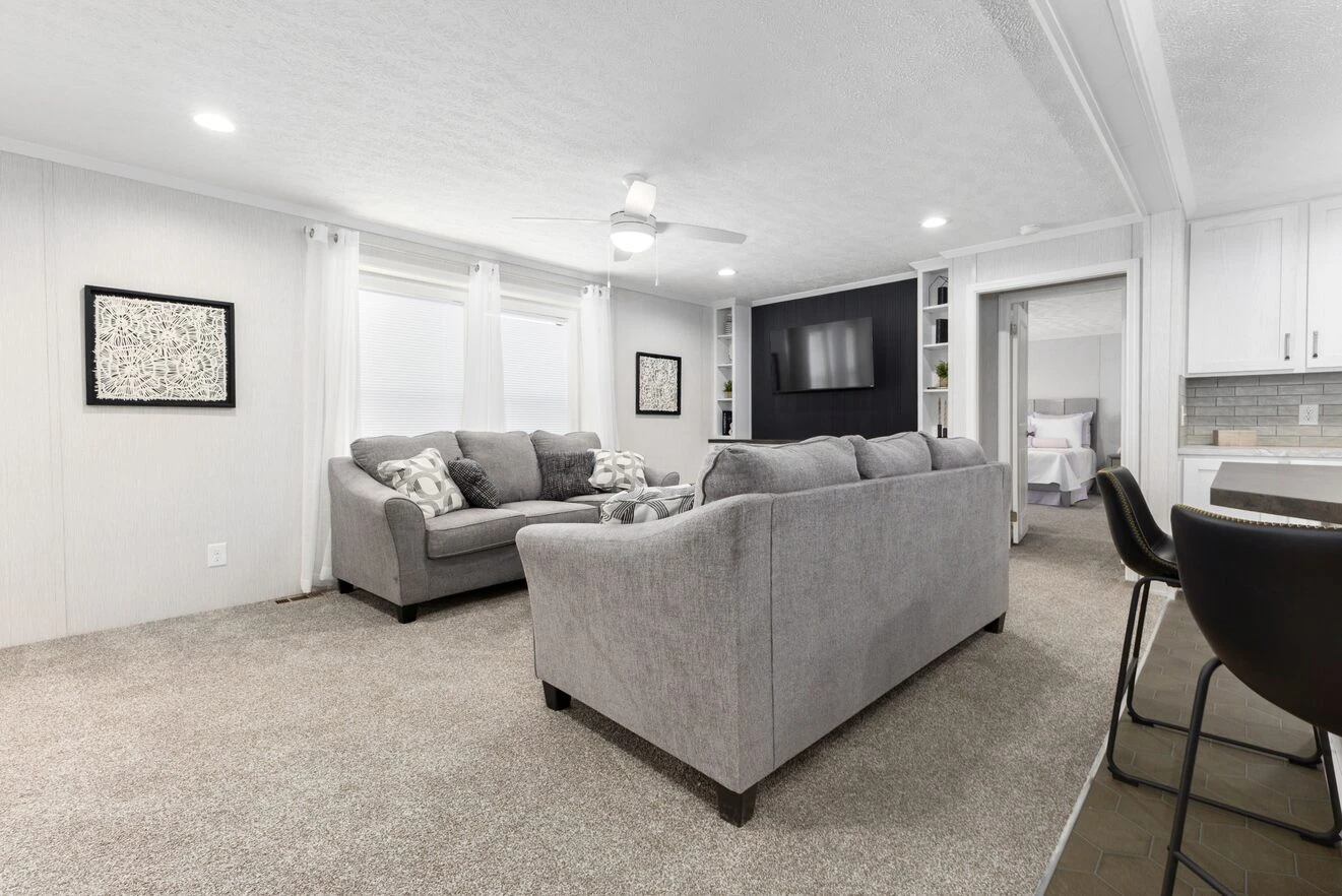 The Alphard 28603E offers a spacious 1,600 sq. ft. double-wide layout with 3 bedrooms and 2 baths. This home features 8’ sidewalls, flat stipple ceilings, and durable Shaw flooring. The modern kitchen includes mission-style cabinetry, soft-close drawer guides, and a stainless steel sink. Built for efficiency, it boasts 2x6 exterior walls, Low-E windows, and R-19 insulation, providing a high-quality, comfortable living environment for any family.