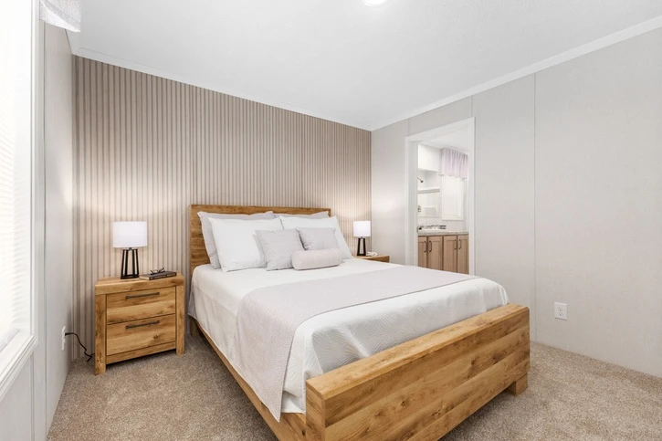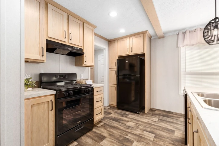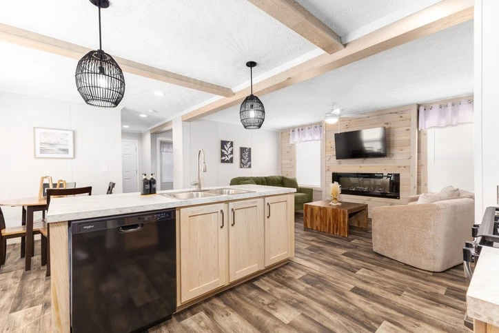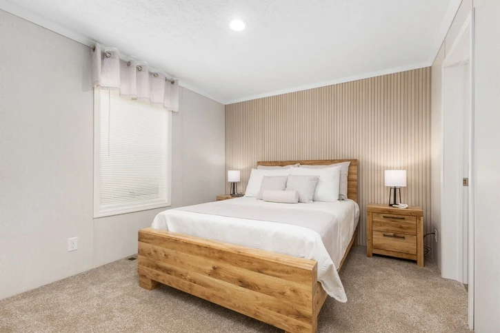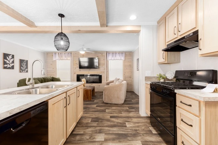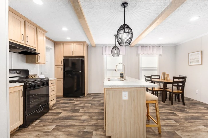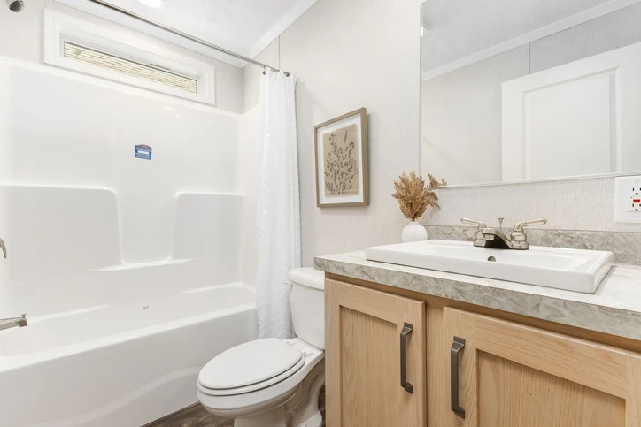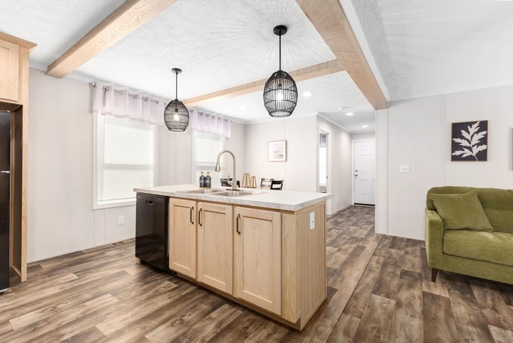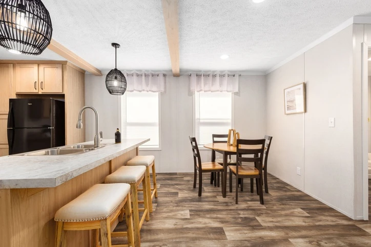 The Bungalow 12 24482A is a comfortable 1,022 sq. ft. double-wide home featuring a spacious 2-bedroom, 2-bathroom layout. Designed for modern living, it offers 8’ sidewalls, flat stipple ceilings, and premium Shaw flooring. The central kitchen is well-appointed with mission-style cabinetry, crown molding, and soft-close drawer guides. Built for lasting durability and energy savings, the home is constructed with 2x6 exterior walls and a robust transverse floor system, complemented by Low-E windows and high-quality fiberglass insulation.