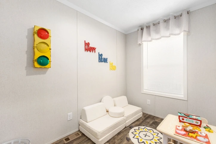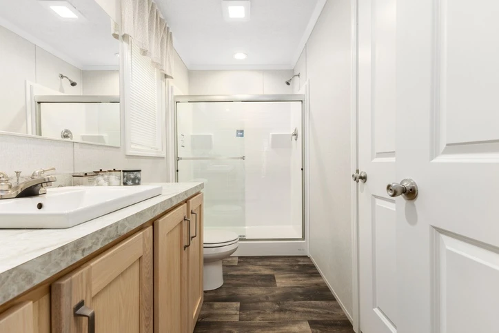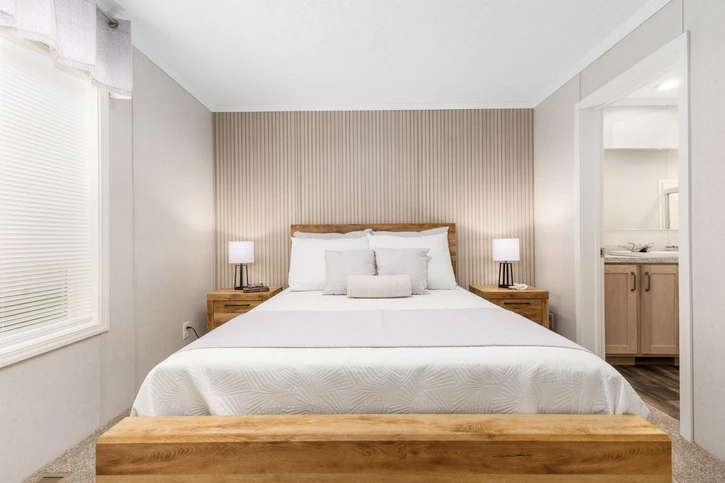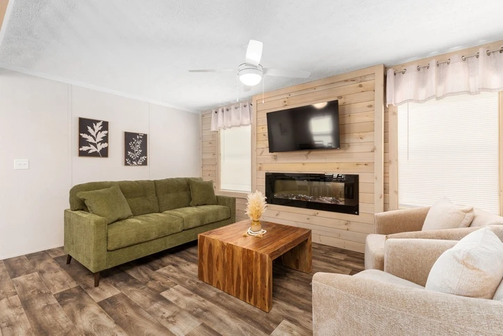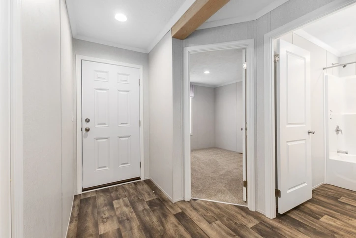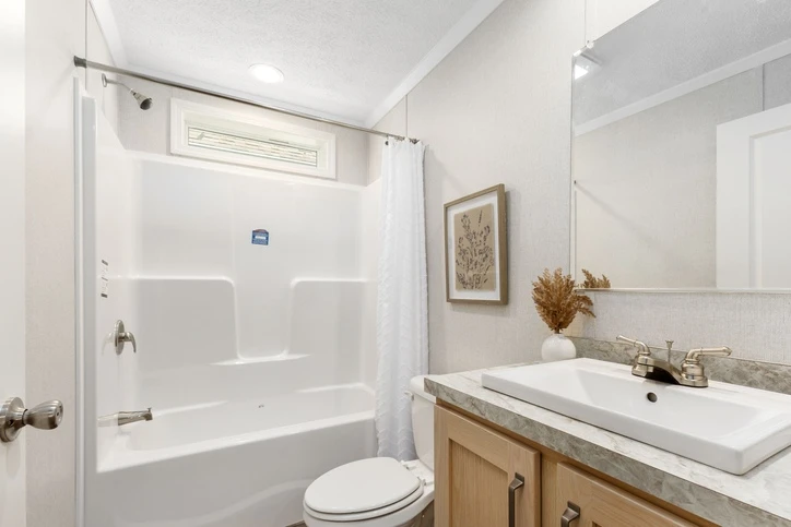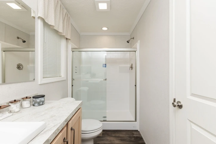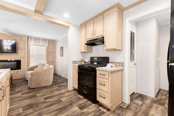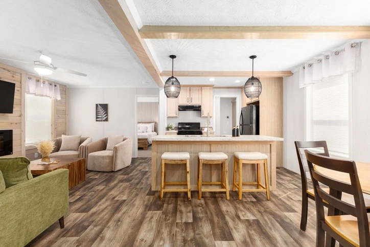 The Bungalow 12 24482A is a comfortable 1,022 sq. ft. double-wide home featuring a spacious 2-bedroom, 2-bathroom layout. Designed for modern living, it offers 8’ sidewalls, flat stipple ceilings, and premium Shaw flooring. The central kitchen is well-appointed with mission-style cabinetry, crown molding, and soft-close drawer guides. Built for lasting durability and energy savings, the home is constructed with 2x6 exterior walls and a robust transverse floor system, complemented by Low-E windows and high-quality fiberglass insulation.