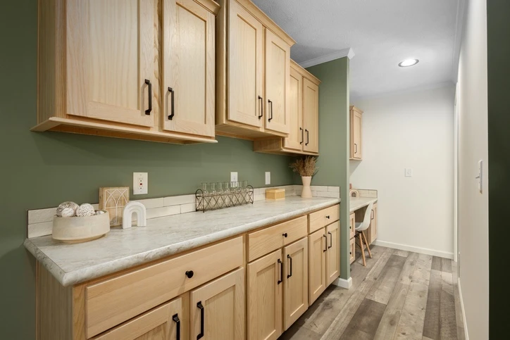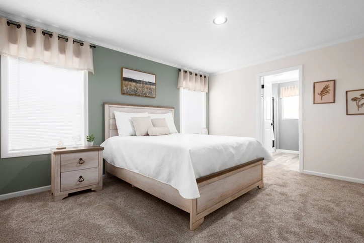 The Mu Cephei 28683A is an expansive 1,813 sq. ft. double-wide home featuring 3 bedrooms and 2 bathrooms. This model offers 8’ sidewalls, flat stipple ceilings, and premium Shaw flooring. The gourmet kitchen boasts mission-style cabinetry with soft-close guides, crown molding, and staggered overheads. Built for durability and efficiency, it includes 2x6 exterior walls, Low-E windows, and a robust transverse floor system for lasting comfort and quality