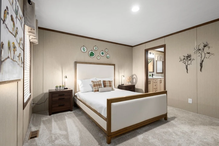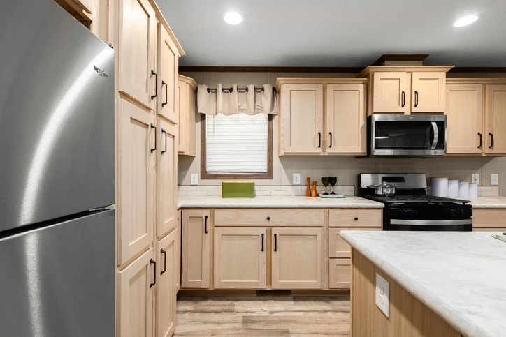 The Regulus 28643D is a premier 1,707 sq. ft. double-wide home featuring 3 bedrooms and 2 bathrooms. This model showcases 8’ sidewalls with flat stipple ceilings and premium Shaw flooring. The gourmet kitchen highlights mission-style cabinetry with soft-close guides and 30” staggered overheads. Engineered for durability, it includes 2x6 exterior walls, energy-efficient Low-E windows, and a robust transverse floor system for lasting comfort and style.