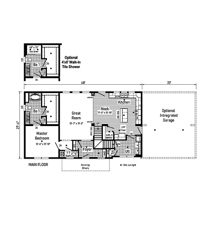 The Casita 1 16361AM is a charming 1,070 sq. ft. modular two-story home featuring 1 bedroom and 1.5 bathrooms. It is engineered with 2x10 floor joists, 2x6 exterior walls, and smooth drywall for a premium finish. The interior includes a modern kitchen with 42” hardwood cabinets and soft-close hardware. With R-38 insulation and a 200 AMP service, this model provides a compact, energy-efficient living experience without compromising on structural quality or high-end features.