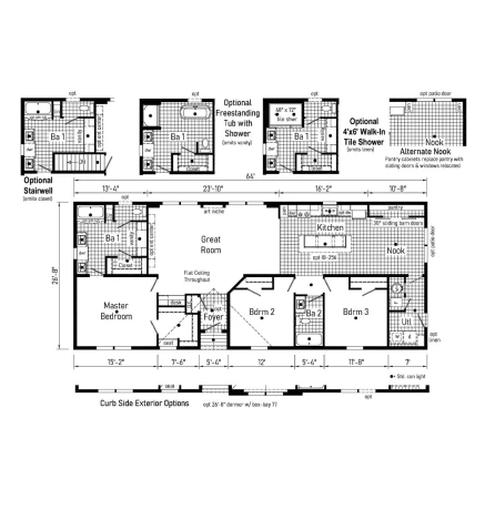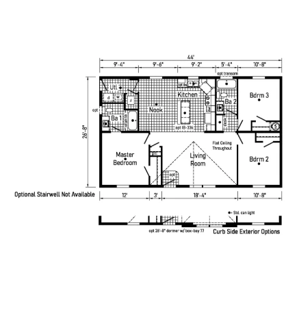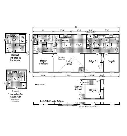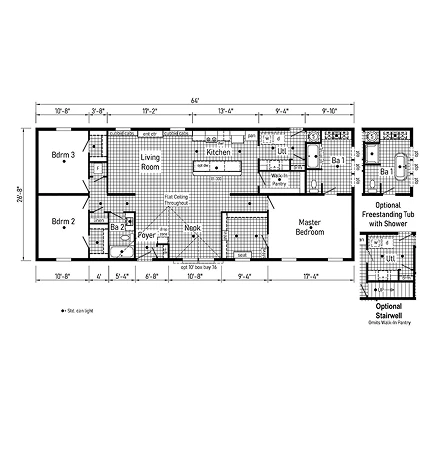 The Canopus 28443B provides a smart 1,173 sq. ft. double-wide layout featuring 3 bedrooms and 2 baths. This home includes 8’ sidewalls with flat stipple ceilings and premium Shaw flooring. A well-appointed kitchen features mission-style cabinetry, soft-close drawer guides, and staggered overheads. Built for lasting durability and efficiency, it offers 2x6 exterior walls, Low-E windows, and a robust transverse floor system for reliable comfort and value.
