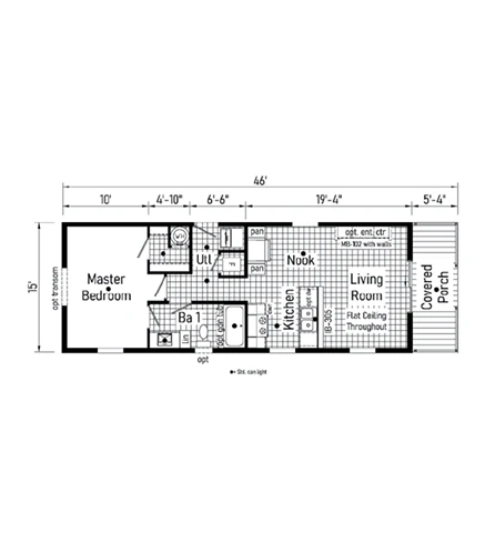 The Bungalow 11 24443BM is a cozy yet sophisticated 1,041 sq. ft. ranch home featuring 3 bedrooms and 2 bathrooms. Despite its efficient footprint, it offers upscale interior finishes like finished drywall and a white molding package. The kitchen is crafted with hardwood mission cabinet doors and soft-close drawer guides. Built for lasting durability, it utilizes 2x10 floor joists, 2x6 exterior walls, and high-performance insulation (R-21 walls/R-31 ceiling), ensuring an energy-efficient and high-quality modular living experience.