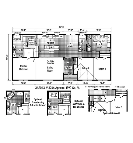 The Barnard's Star 32643AM is an impressive 1,920 sq. ft. ranch-style home featuring 3 bedrooms and 2 bathrooms. This model elevates the standard with finished drywall, 8’ sidewalls, and a white molding package. The gourmet kitchen boasts hardwood mission cabinet doors, crown molding, and soft-close guides. Built to modular or manufactured standards, it features a robust 2x10 floor joist system, 2x6 exterior walls, and superior energy efficiency with R-21 wall insulation and R-31 ceiling insulation.
