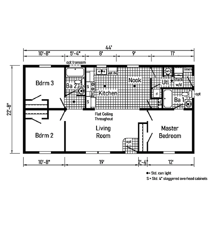 The Bungalow 10 24443A is a cleverly optimized 997 sq. ft. double-wide home featuring a complete 3-bedroom, 2-bathroom layout. This model maximizes its footprint with 8’ sidewalls and flat stipple ceilings, creating an airy feel throughout the Shaw-floored interior. The kitchen serves as a focal point with mission-style cabinetry, crown molding, and soft-close drawer guides. Built with a robust transverse floor system and 2x6 exterior walls, it delivers a high-quality, energy-efficient living space that doesn't compromise on bedroom count or essential features.