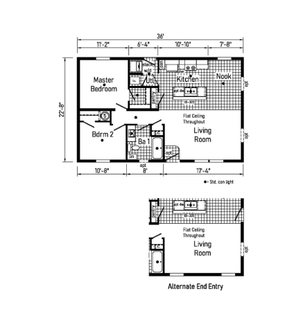 The Bungalow 2 16362A is a masterclass in efficiency, offering a 2-bedroom, 1-bathroom layout within a compact 540 sq. ft. footprint. This single-wide features 8’ sidewalls and flat stipple ceilings that enhance the sense of space. The kitchen is fully equipped with mission-style cabinetry, crown molding, and soft-close drawer guides. Built with 2x6 exterior walls and a robust transverse floor system, it provides high-quality construction and energy-efficient living, perfect for those seeking a streamlined and functional home.