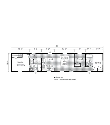 The Challenger 14682B from the Blazer Select series offers a sophisticated 907-square-foot layout that prioritizes both culinary function and master-suite luxury. This two-bedroom single-wide stands out with a central kitchen island under elegant pendant lighting and a full suite of stainless steel appliances. Built for the Northeast climate, it features 2x6 exterior walls and energy-efficient Low-E windows. High-end details like double master sinks, a 60" fiberglass shower, and 8' flat ceilings make the Challenger a premier choice for modern residential living.