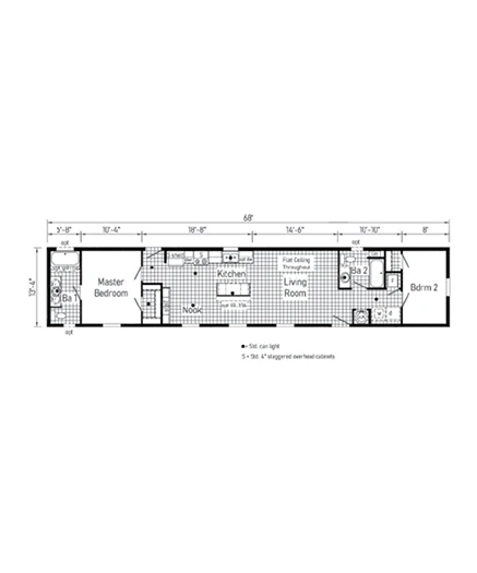 The Mustang 14602B from the Blazer Select series offers a sleek, 800-square-foot layout that maximizes both style and utility. This two-bedroom single-wide features a gourmet-inspired kitchen with a central island, stainless steel appliances, and elegant pendant lighting. Built to endure Pennsylvania winters, it boasts 2x6 exterior walls and advanced R-19 insulation. With upscale touches like 8-foot flat ceilings, a master bath with double sinks, and mission-style cabinetry, the Mustang 14602B provides a high-end living experience in a smart, efficient footprint.