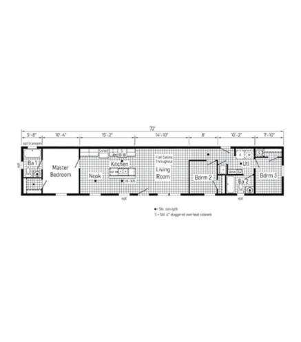 Part of the Blazer Select series, the Z-28 14723B provides a functional 960 square foot floor plan with 3 bedrooms and 2 bathrooms. This single-wide home features 8' sidewalls and a mission-style kitchen with 30" staggered overhead cabinets and soft-close drawer guides. Built with a 200 AMP electrical service and R-19 wall insulation, it is designed for efficiency and comfort in Western Pennsylvania. The optional Premier pack adds luxury with hardwood cabinet doors and a fiberglass one-piece tub/shower combo.