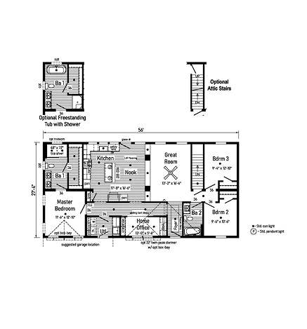 The Homestead 32563AM is a spacious 1,705 sq. ft. modular ranch featuring 3 bedrooms and 2 bathrooms. This high-performance home is built with 2x10 floor joists and 2x6 exterior walls, accented by smooth drywall and colonial molding. The gourmet kitchen boasts 42” hardwood cabinets with soft-close hardware and dovetailed drawers. With R-38 insulation and a 200 AMP service, this model provides a premium, energy-efficient living experience designed for lasting comfort and structural integrity.