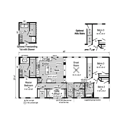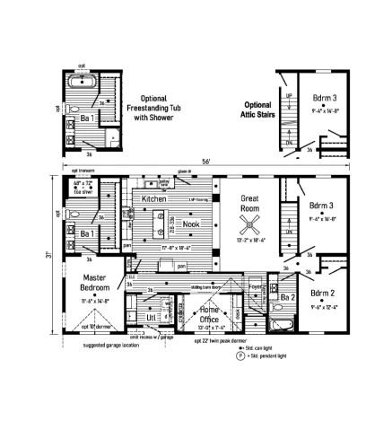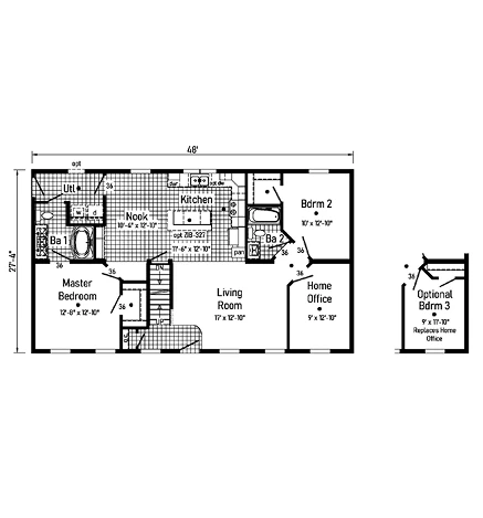 The Grand Deuce 1.0 28563BM is a masterfully efficient 1,531 sq. ft. modular ranch featuring 3 bedrooms and 2 bathrooms. Engineered for lasting value, it features 2x10 floor joists, 2x6 exterior walls, and a whole-house wind wrap. The interior is defined by smooth drywall ceilings and a designer kitchen equipped with 42” hardwood mission cabinets and soft-close hardware. With R-38 ceiling insulation and a 200 AMP service, this model delivers a high-performance, energy-efficient environment in a classic single-story layout.