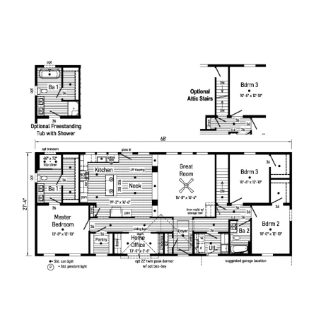 The Grand Deuce 3.0 28683AM is a spacious 1,856 sq. ft. modular ranch featuring 3 bedrooms and 2 bathrooms. This high-performance home is built with 2x10 floor joists, 2x6 exterior walls, and smooth drywall throughout. The interior is accented by colonial molding and a gourmet kitchen with 42” hardwood cabinets and soft-close hardware. With R-38 ceiling insulation and a 200 AMP service, this model provides a premium, energy-efficient living experience designed for lasting comfort.