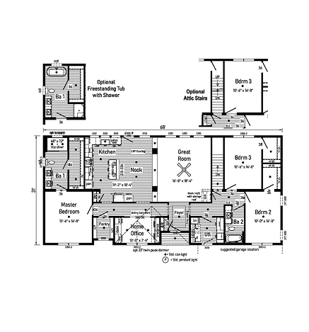 The Grand Deuce 3.2 32683CM is an expansive 2,108 sq. ft. modular ranch featuring 3 bedrooms and 2 bathrooms. Built with 2x10 floor joists and 2x6 exterior walls, it offers high-end structural integrity and smooth drywall. The gourmet kitchen boasts 42” hardwood cabinets and soft-close hardware. With R-38 ceiling insulation and a 200 AMP service, this model provides a premium, energy-efficient living experience designed for lasting comfort and structural excellence.