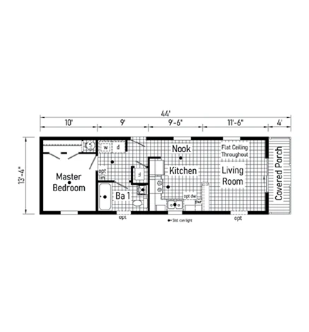 Part of the Astro Creations series, the Bungalow 1 14441A offers an efficient 587 sq. ft. layout featuring 1 bedroom and 1 bathroom. This single-wide home boasts 8’ sidewalls with flat ceilings, Shaw flooring, and a modern kitchen equipped with 42” overhead cabinets and soft-close drawer guides. Built for durability and comfort, it includes energy-efficient vinyl Low-E windows and a robust transverse floor system, making it an ideal choice for streamlined living.