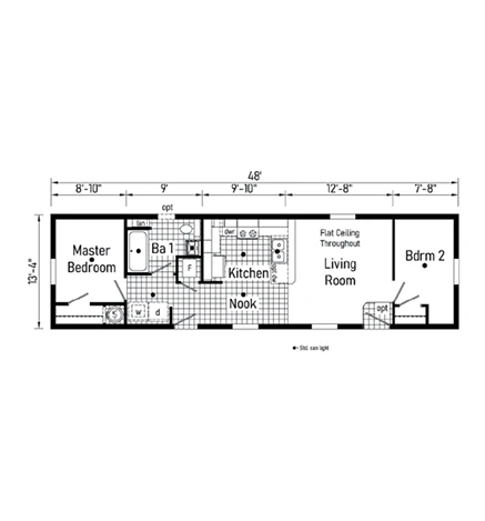 The Deimos 14763A from the Astro Creations series is a spacious 1,013 sq. ft. single-wide featuring 3 bedrooms and 2 bathrooms. This home is designed with 8’ sidewalls, KCMA-certified mission cabinetry, and 42” overhead cabinets with soft-close drawer guides. Built for comfort and efficiency, it includes 2x6 exterior walls, vinyl Low-E windows, and Shaw flooring. Additional upgrades are available through the Premier Plus pack, offering finished drywall and hardwood cabinet doors.