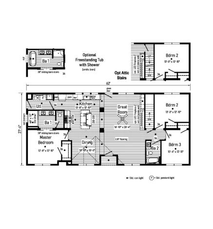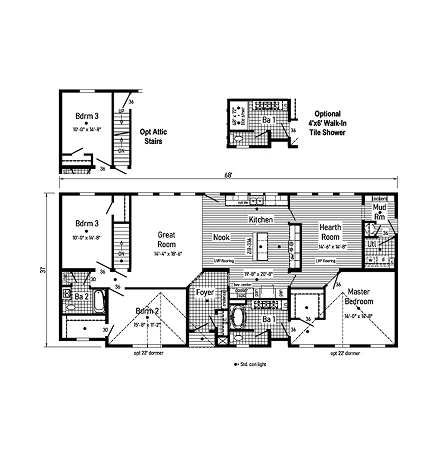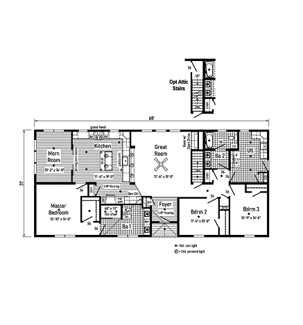 The Gladiator 32683BM is a premier 2,108 sq. ft. modular ranch featuring a 3-bedroom, 2-bathroom layout. Constructed with 2x10 floor joists and 2x6 exterior walls, it offers superior structural integrity with smooth drywall and colonial trim. The designer kitchen is equipped with 42” hardwood cabinets, dovetailed drawers, and soft-close technology. With R-38 ceiling insulation and a 200 AMP service, this home provides an expansive, energy-efficient floorplan designed for modern luxury and lasting value.