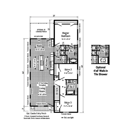 The Casita Ranchero 2 32603CM is a charming 1,612 sq. ft. modular ranch featuring 3 bedrooms and 2 bathrooms. This high-quality home is built with 2x10 floor joists and 2x6 exterior walls, finished with smooth drywall and colonial molding. The gourmet kitchen boasts 42” hardwood mission cabinets with soft-close hardware and dovetailed drawers. With R-38 ceiling insulation and a 200 AMP service, this model provides an energy-efficient, premium living experience designed for lasting comfort.