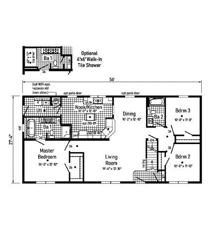 The Casita Rancho 3 32643BM is an expansive 1,736 sq. ft. modular ranch featuring a 3-bedroom, 2-bathroom layout. Constructed with 2x10 floor joists and 2x6 exterior walls, it features smooth drywall and white colonial trim. The designer kitchen is equipped with 42” hardwood cabinets, dovetailed drawers, and soft-close hardware. With R-38 ceiling insulation and a 200 AMP service, this home offers a high-performance, energy-efficient floorplan designed for premium comfort and structural excellence.