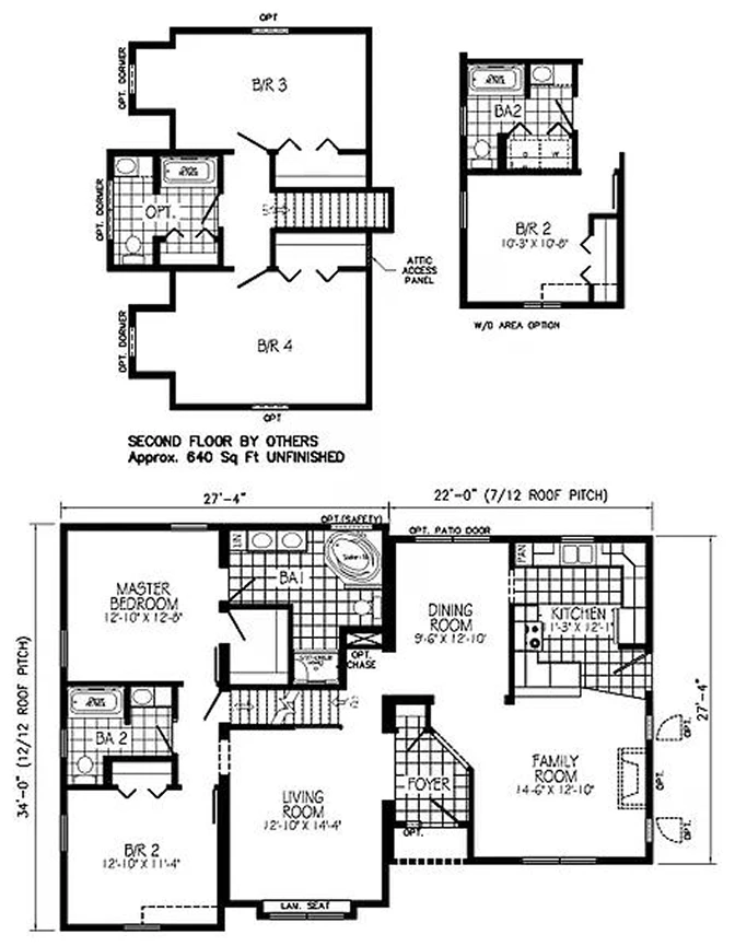 The 640 sq. ft. unfinished second floor provides a fantastic opportunity to add significant living space to The Woodmont. The proposed layout shows how this area can be efficiently finished to include two additional bedrooms and a third full bathroom. This flexible space ensures your home can easily adapt to a growing family or evolving needs, adding tremendous long-term value and utility.