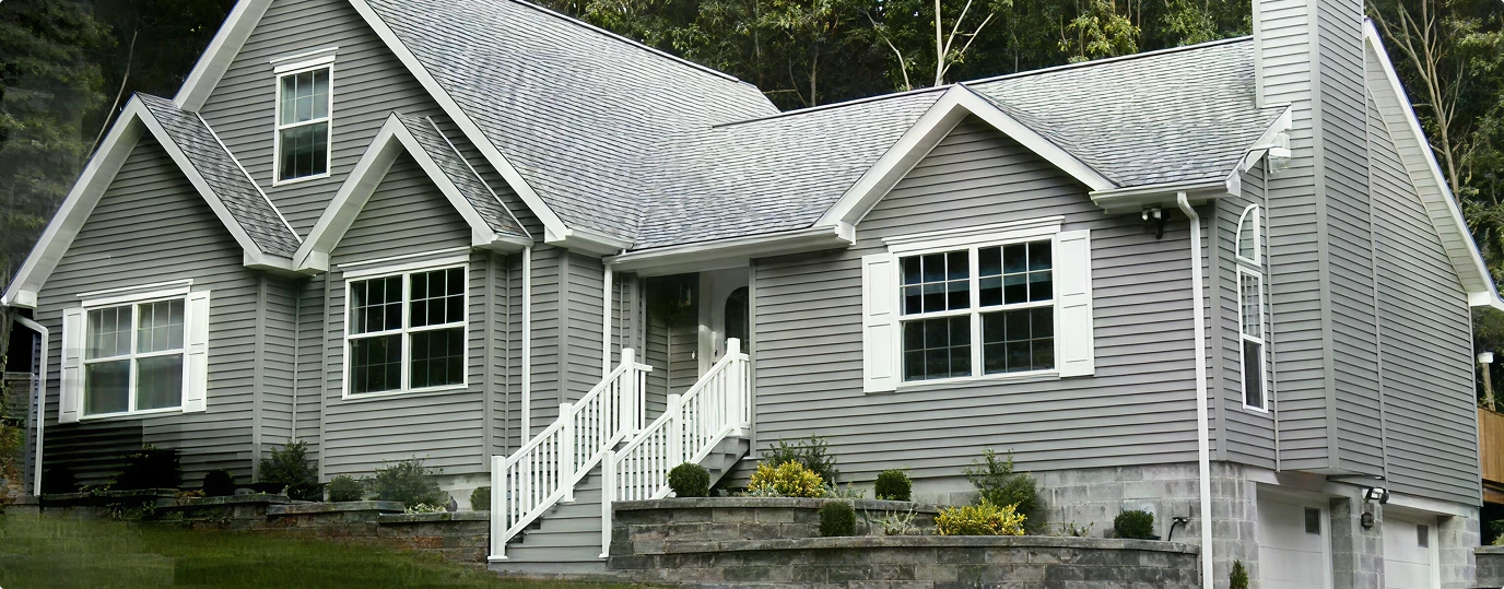 - Complex Roofline: A series of multiple intersecting gables and dormers gives the home a unique, custom-built appearance.