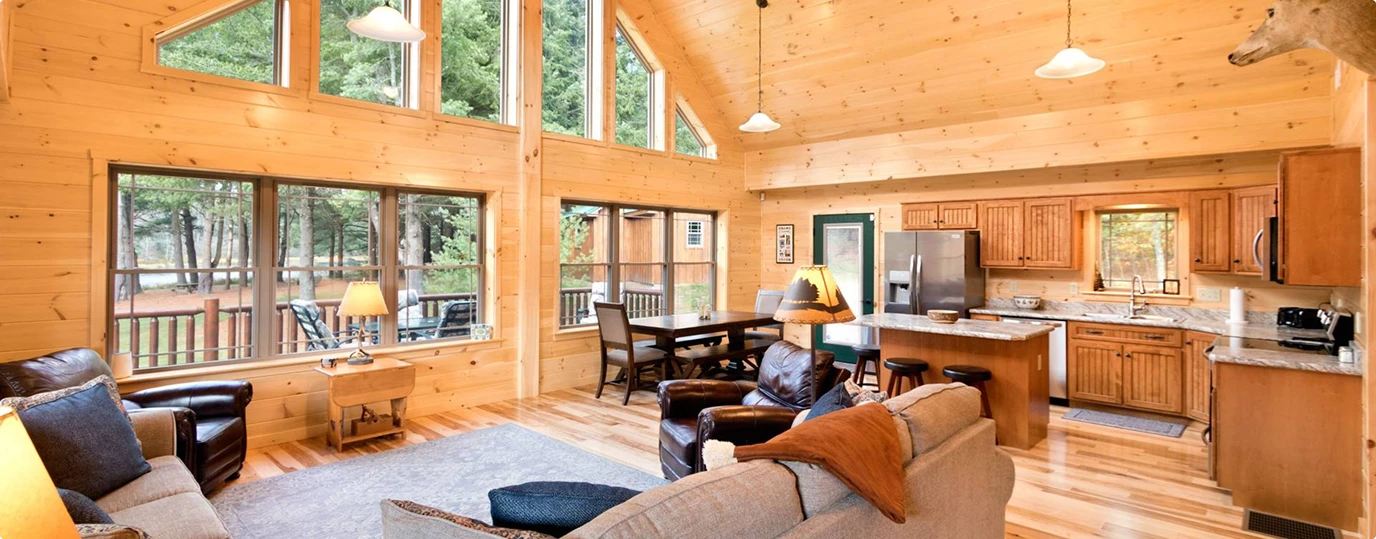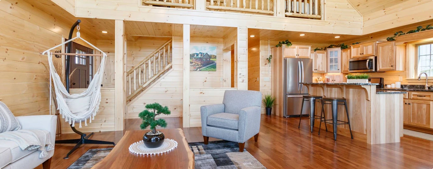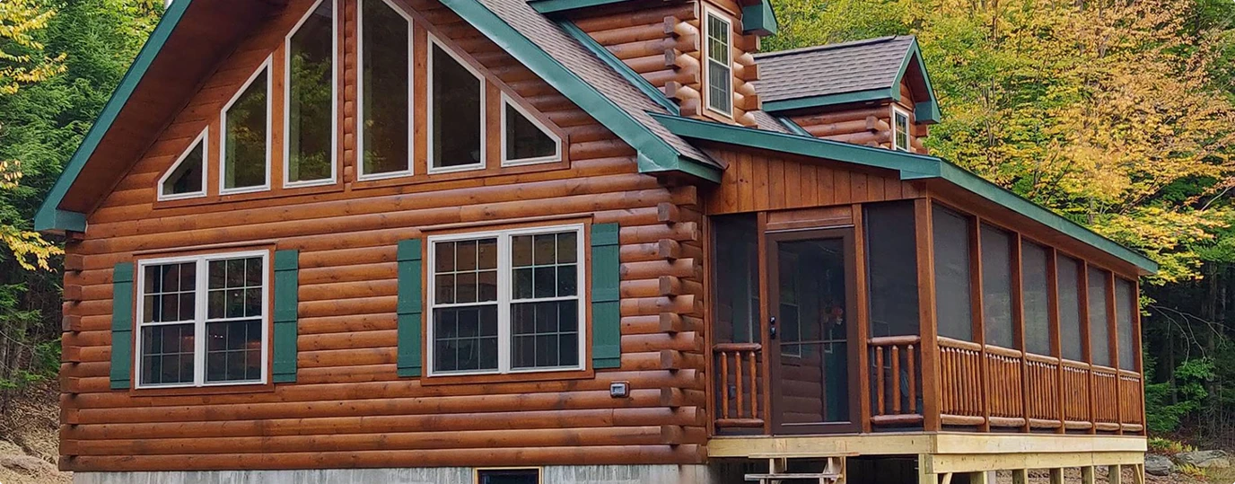 - Log Siding: Beautiful and durable log siding gives the home an authentic cabin look and feel.