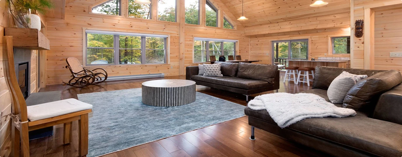 The interior of the Mountaineer Deluxe is designed to feel both grand and comfortable, with soaring open spaces balanced by private, functional rooms.