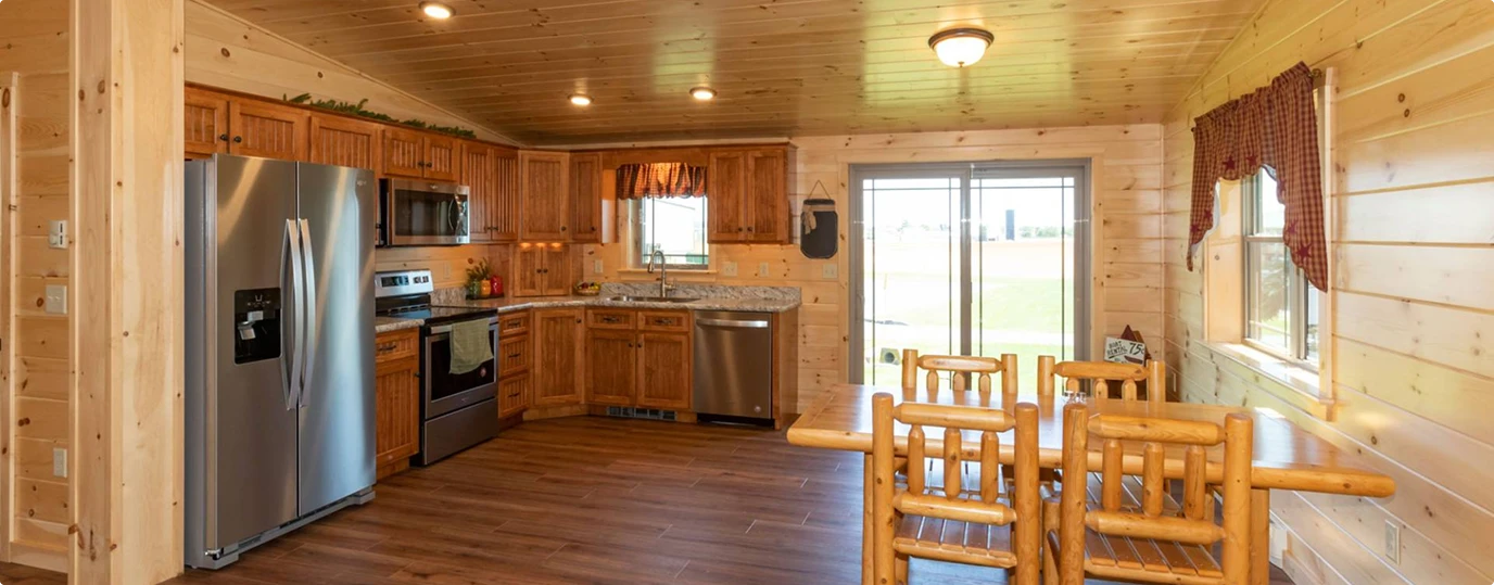 - Knotty Pine Finishes: Our standard interior packages include solid knotty pine doors and beautiful tongue & groove yellow pine flooring for an authentic cabin feel.
