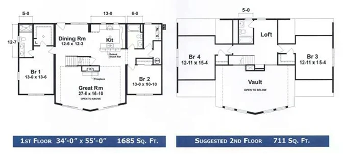 - Optional Additional Bedrooms: The plan shows how the second floor can easily accommodate two additional bedrooms (Bedroom #3 and Bedroom #4) and a third full bathroom.