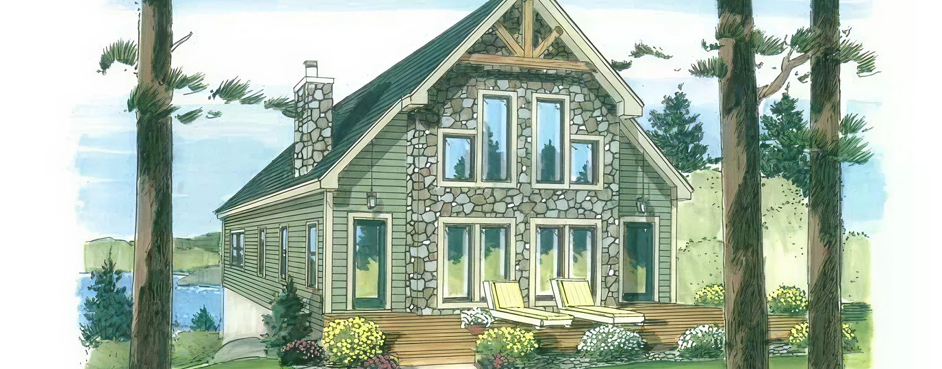 - Chalet-Style Prow Front: The home's front is dominated by a wall of vista glass under a steep A-frame prow roof, perfect for lots with a scenic view.