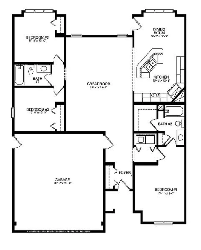 - Open Kitchen and Dining: The large kitchen (12'-9" x 12'-3") with its peninsula snack bar and the adjoining dining room (16'-2" x 10'-8") are completely open to the great room, making it perfect for entertaining.