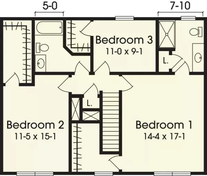 - Additional Bedrooms: Two more comfortable bedrooms (11'-5" x 15'-1" and 11'-0" x 9'-1") share the second full bathroom upstairs.