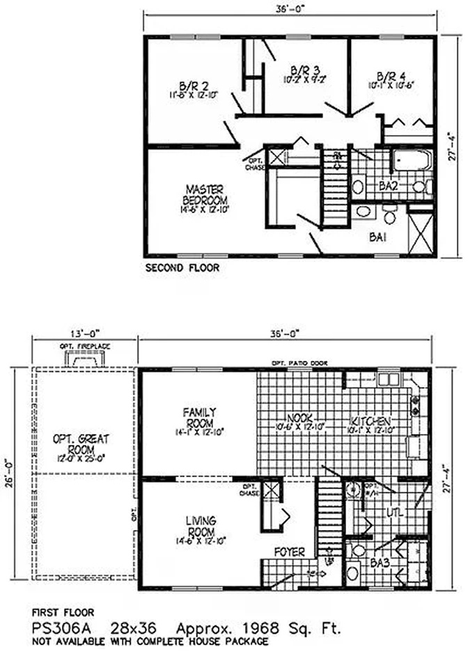 - Optional Great Room: The floor plan includes an option to add a large 12'-0" x 26'-0" great room with an optional fireplace, creating an even more expansive living area.