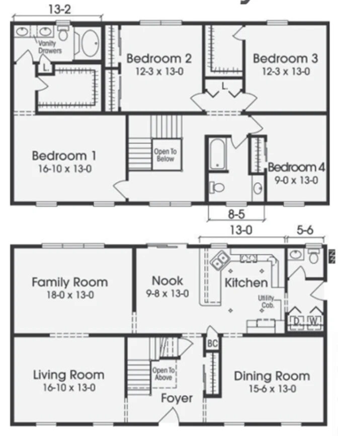 - Multiple Living Spaces: This home features a formal living room (16'-10" x 13'-0"), a separate family room (18'-0" x 13'-0"), and a formal dining room (15'-6" x 13'-0"), providing incredible flexibility for any occasion.