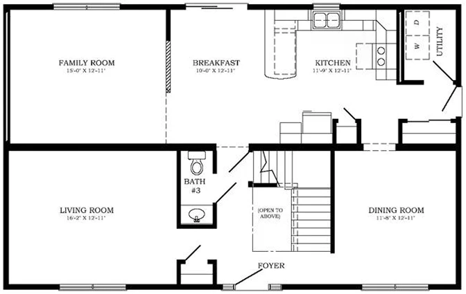 - Multiple Living Spaces: This home features a formal living room (16'-0" x 12'-11"), a separate family room (15'-0" x 12'-11"), and a formal dining room (11'-8" x 12'-11"), providing incredible flexibility for any occasion.