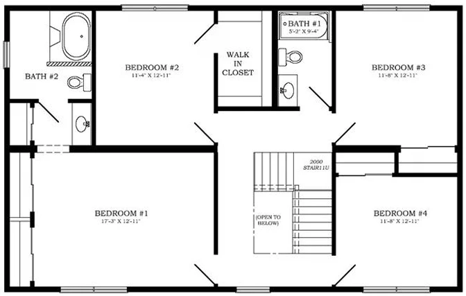 - Spacious Master Suite: Bedroom #1 (17'-3" x 12'-11") serves as a large and luxurious master suite, featuring a private en-suite bathroom and walk-in closet.