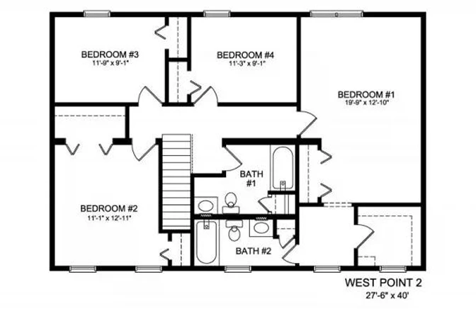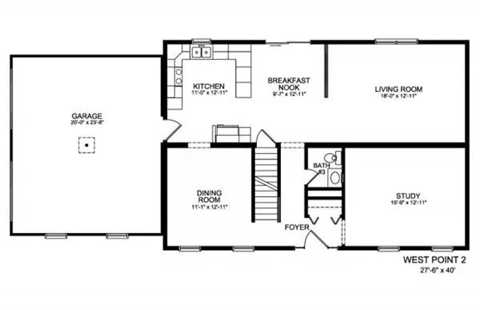 The West Point is a classic two-story colonial home that offers an abundance of space for a large family. This 2,200 sq. ft. floor plan features four bedrooms, two-and-a-half bathrooms, and a versatile first-floor study perfect for a home office. The main floor is designed for both formal entertaining and casual family life, with a living room, dining room, and an open-concept kitchen and breakfast nook. With its stately exterior and highly functional layout, The West Point is a perfect choice for a growing family.