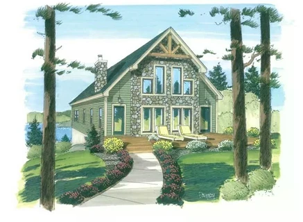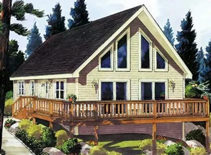 A Chalet-style home is known for its rustic look, steep gabled roofs, and a dramatic two-story great room with vaulted ceilings. Its signature feature is often an expansive wall of "vista glass" windows designed to capture scenic views, making it perfect for lots with a view.